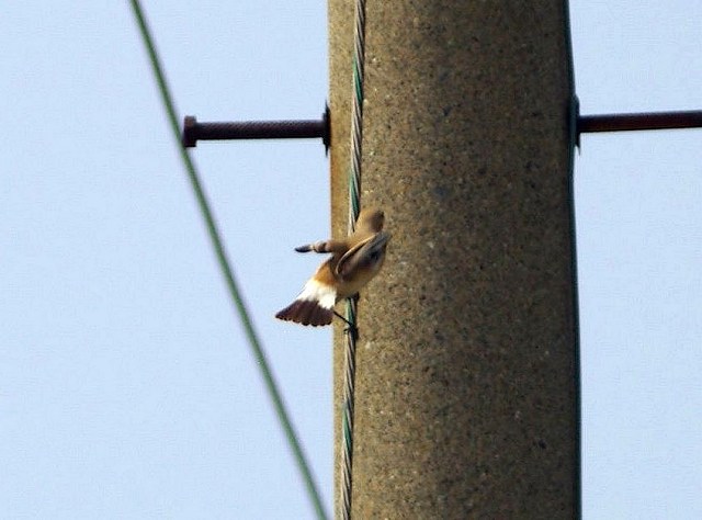 識別ポイントの一つとなる尾羽はこれしか撮れなかった。 先端の黒いバンドが幅広なところからサバクヒタキか