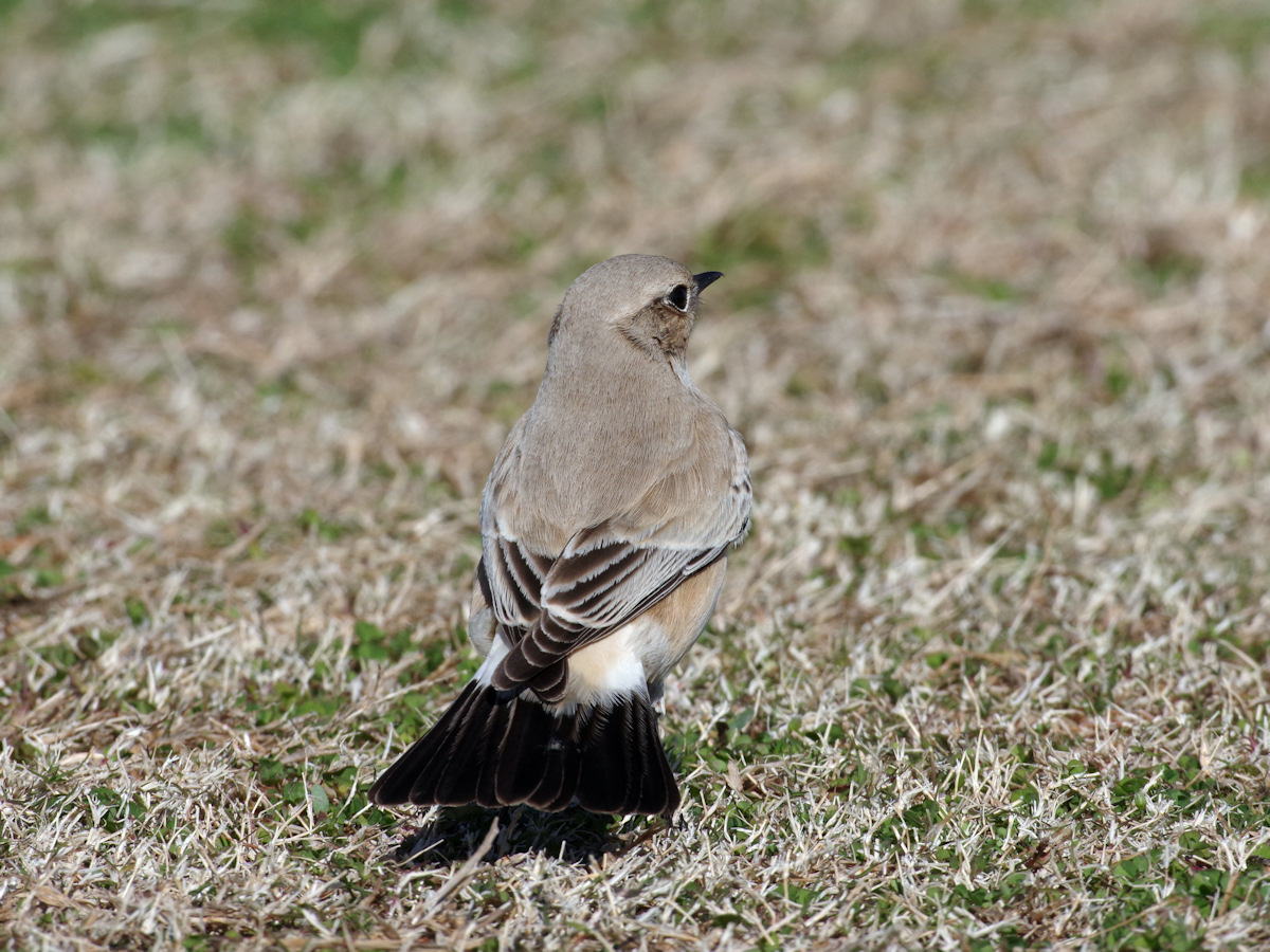 後ろから見たところ。 イナバヒタキは尾羽の黒い部分が逆T字型になり、パターンが違う。