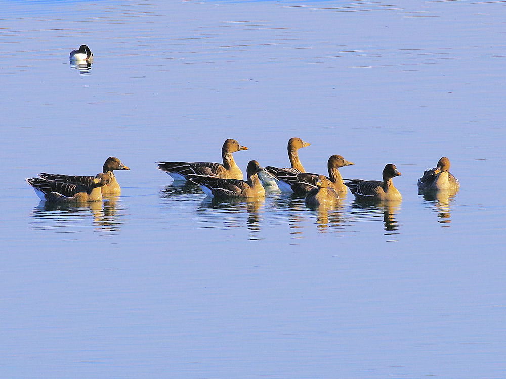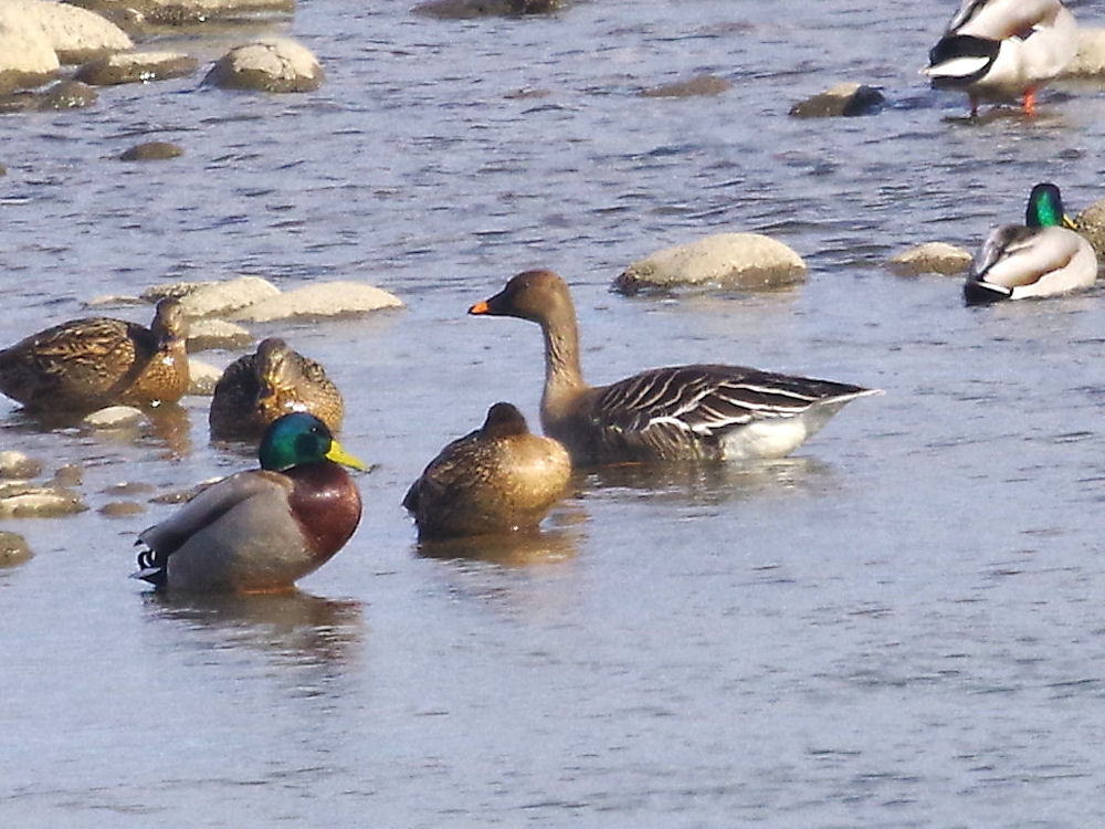 11月、2羽のマガンと共に1羽のヒシクイが飛来して越冬した。 マガンと比べると二回りほど