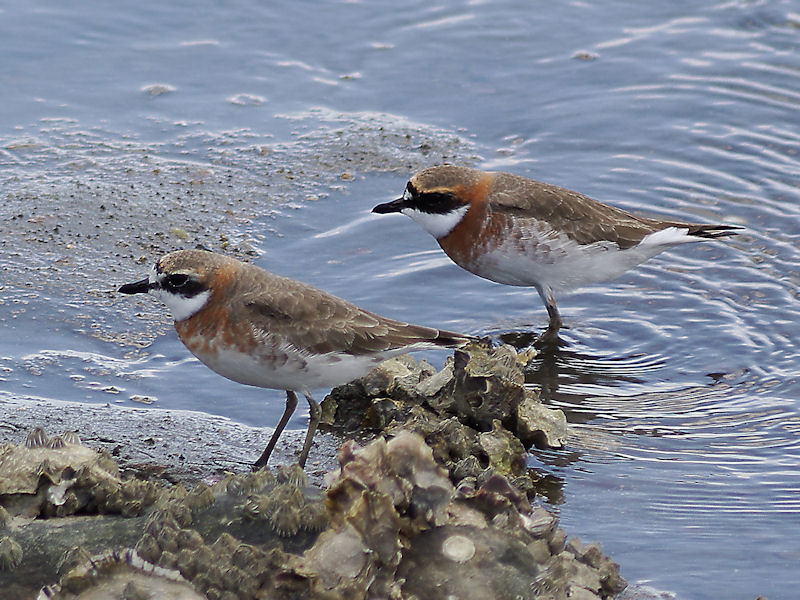 冬羽はシロチドリに似るがシロチドリは首の後ろに白い帯が有り、胸の褐色のバンドは中央で切れ
